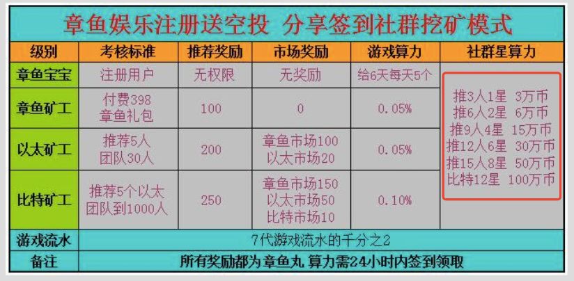 简单来说,在章鱼娱乐的运营模式中,每个捕手拉到的人头越多,平台奖励越多,下家囤的币越多,上级的收益也越大。