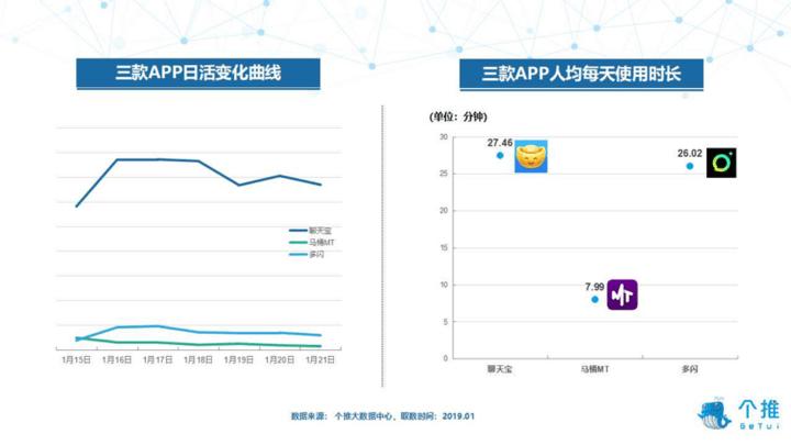 1 月 15 日,多闪、马桶 MT 和聊天宝同时亮相,引发了「围剿微信」的热议,但个推大数据近日发布的一份数据报告显示,半个月过去后,这三款应用的成绩都有些惨不忍睹。