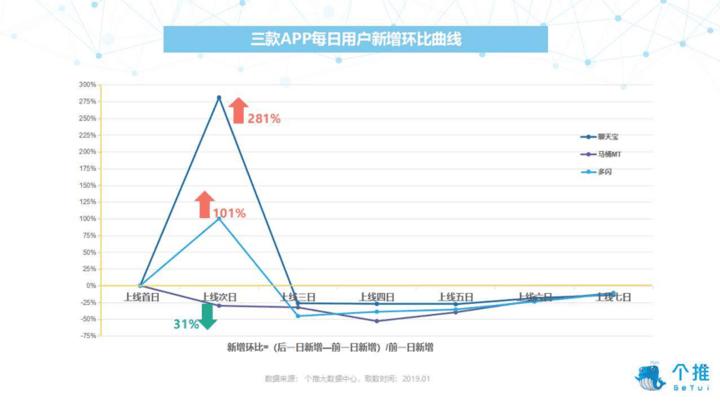 经历了头几天的高速增长后,三款应用的净增长此后一路下滑,马桶 MT 和聊天宝甚至出现了负增长,即卸载的用户多于新增的用户。
