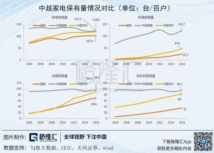 而家电也一样,越南处于热带地区,空调对于消费者来说是必需品,随着基础设施的不断完善,和居民可支配收入的逐渐提升,空调销量增速指日可待 。