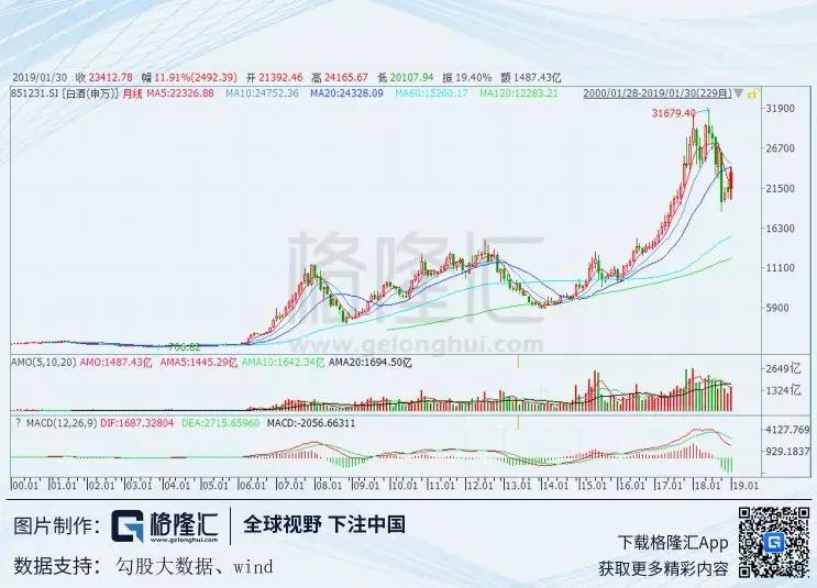 最后再看A股过去表现最好的白酒板块,过去18年涨幅接近32倍,现在是23.4倍。