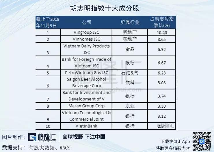 下图是胡志明十大成分股,除了房地产、银行股占比较大之外,位列其中的还有两只消费股,分别是越南牛奶公司(VNM)和西贡啤酒(SAB)。