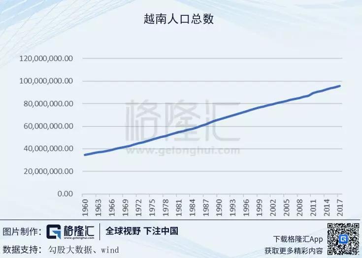 越南相比于中国有更低的用工成本,越南年龄中位数是30.7岁,有70%的人口生活在农村,和印度持平,但是相对于印度来说,越南的政治更加稳定,意味着这个处在社会主义初级阶段的国家,有着廉价且听话的劳动力。