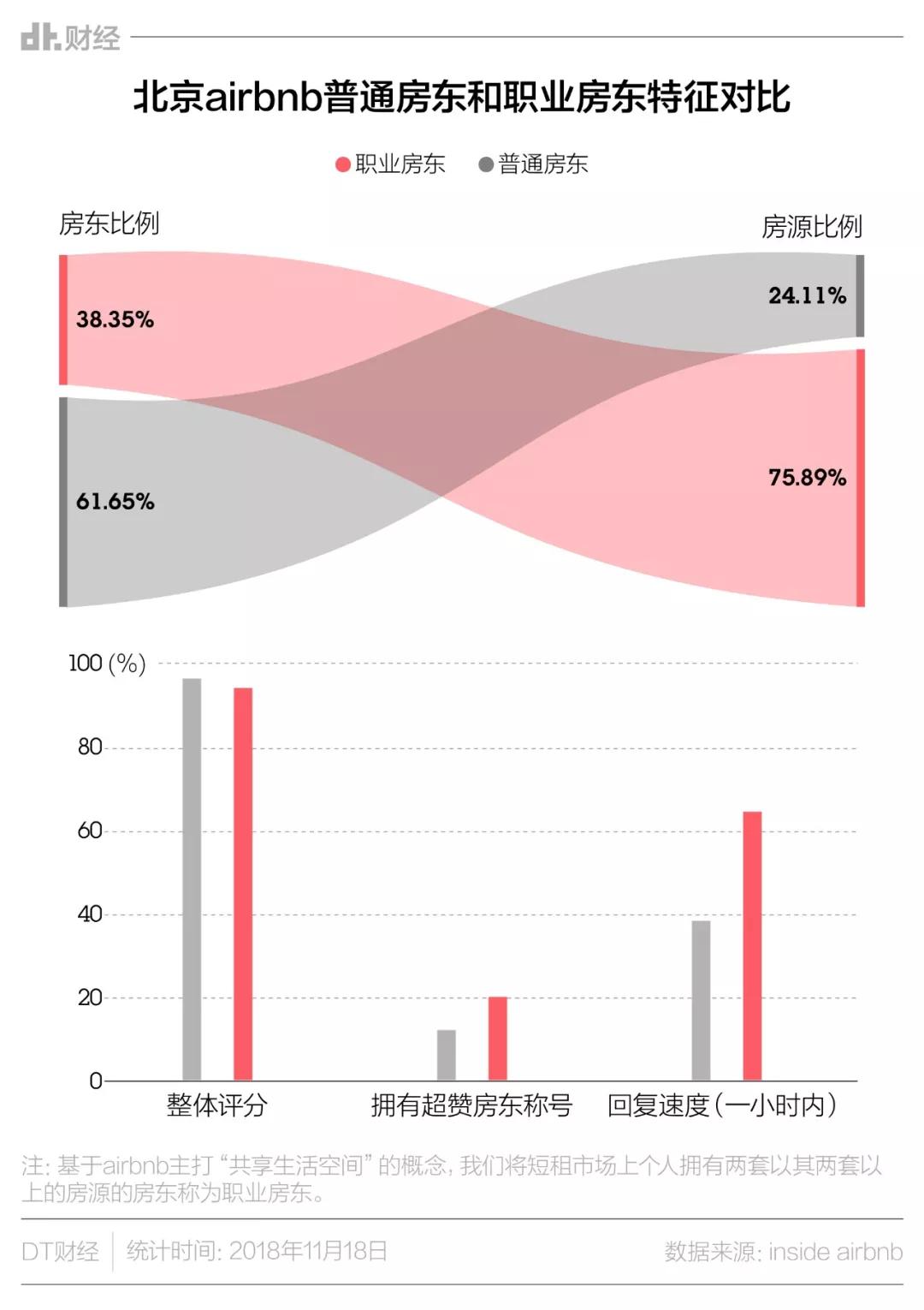 从数据看,北京Airbnb平台上这样的房东数量占比不到4成,但是他们贡献了超过7成的房源。