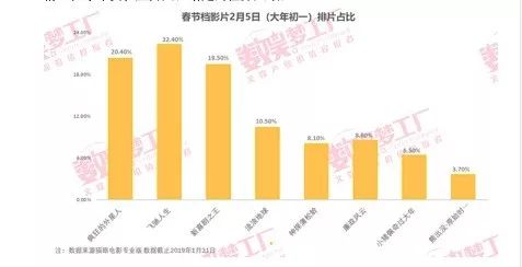 大年初一共有8部影片上映。而截至2019年1月31日,首日排片占比在20%以上的仅有2部,周星驰“招牌”加持的《新喜剧之王》首日排片仅为19.5%。