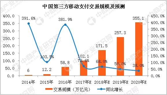 据中商产业研究院发布的《2017-2022年中国第三方移动支付行业市场前景及投资机会研究报告》数据显示:2019年中国第三方移动支付交易规模将达到257.3万亿元,增长率为50.0%。