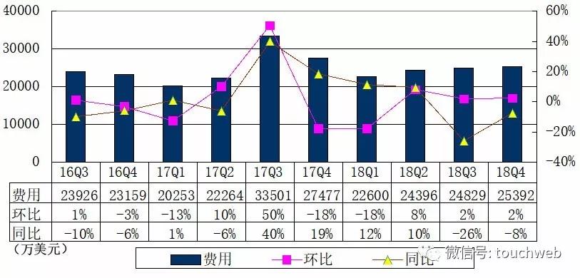 搜狐第四季度费用为2.53亿美元,较上一季度的2.48亿美元增长2%,但较上年同期的2.74亿美元下降8%。