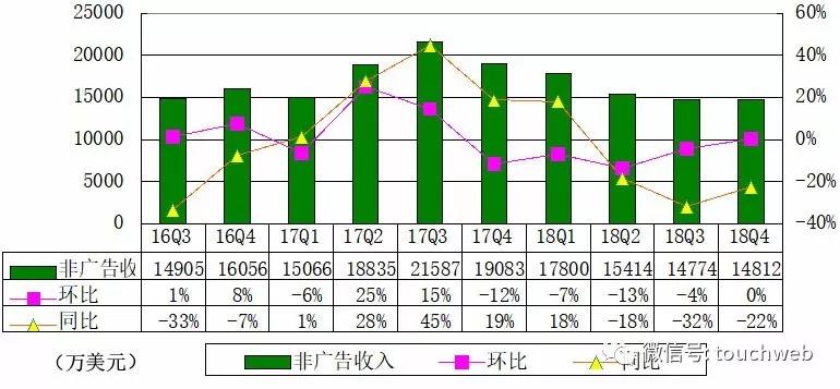 搜狐第四季度非广告收入为1.48亿美元,较上一季度持平,较上年同期下降22%。