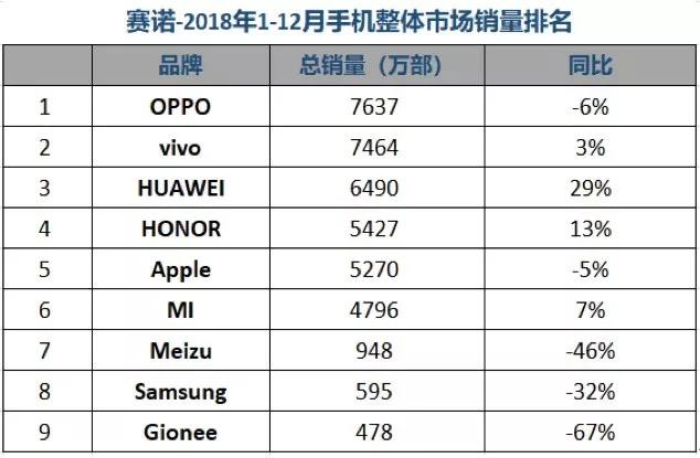 在线下市场方面,OPPO和vivo以传统优势位居前两名,华为、苹果和荣耀紧随其后。 不过,互联网手机也加速渠道下沉,荣耀2018年线下市场销量达3056万部,小米约2535万部。