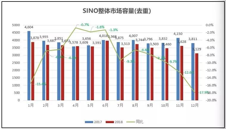 具体分析来看,据市场调研机构赛诺提供的数据,2018年全年,中国智能手机整体市场容量均处于下滑趋势。