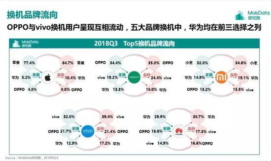苹果在2018年高定价策略相当于给华为等手机品牌创造了一波市场红利,让国产手机在整体市场增长停滞期意外的赢得了一个难得的黄金收割期。比如iPhoneXR把5~6K档以及以下的空间留给了mate20,XS把7~8K以及以下的空间留给了mate20Pro。把4K档以及以下留给了OV小米。根据MobData研究院的数据显示,去年第三季度,有5.2%的男性果粉和10.4%的女性果粉被华为分流。有4.8%的男性果粉和8%的女性果粉被OPPO分流。