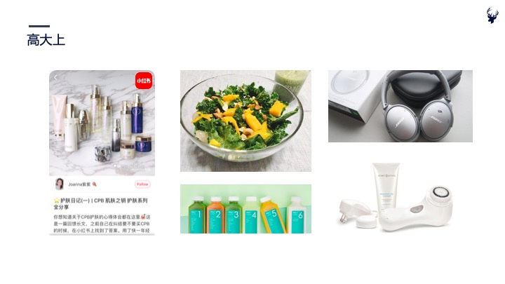 我列了一下产品,这可能是我们大多数人眼里的消费升级,甚至是在座的各位比较熟悉的消费常态。这种消费升级的代表产品是:2013年创立的小红书,2015-2016盛行的各类海淘和代购;从国外引入国内的新兴生活方式,比如吃沙拉、喝果汁做detox;让我们更舒适的电子产品,降噪耳机和洁面仪等。这些产品有个共同的特点,那就是特别费钱。但确实品质很高。而且,很多时候这种产品除了它本身的产品质量非常好之外,还会提供品牌价值,也被广泛称为社交货币。