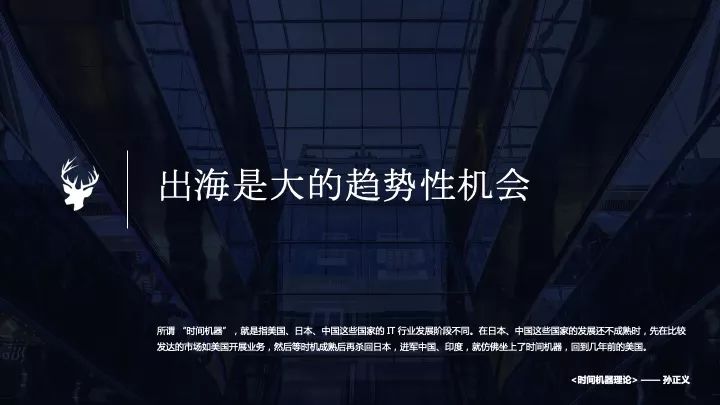 那这里引入时间机器理论,时间机器指的是日本、美国等成熟国家和其他的发展中国家,IT行业发展阶段不同,所以在中国等发展中国家不成熟的时候,美国、日本的成熟模式模式通过一个时间机器回到10年前在不成熟的国家开始应用,进军东南亚、印度、非洲等市场,就仿佛坐上了时光机器,回到几年前的美国。