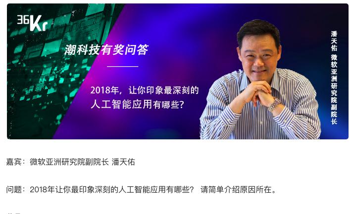 第五期活动,我们邀请了微软亚洲研究院副院长潘天佑,一起畅聊2018年让人印象深刻的人工智能应用。这期活动也吸引了不少读者参与讨论。其中有一些评论我们认为很有价值或者很有趣,因此也做了摘录,放进了本篇文章中,希望与更多读者分享。