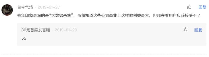 此次的活动中,大数据杀熟也频频被提及。但从评论内容看,读者对此也颇有争议。这也与2018年互联网公司“大数据杀熟”频频刷屏相呼应。诸如滴滴、携程等公司也纷纷因为“杀熟”引发争议,应对“大数据杀熟”的攻略也纷纷出现。这样的动态定价模式是大势所趋,还是侵犯了消费者的权益,恐怕还会有更长久、更广泛的争论。