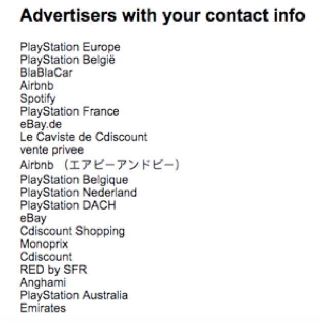 (有 21 位广告客户可以访问我的 Facebook 信息,Playstation 似乎很喜欢我)