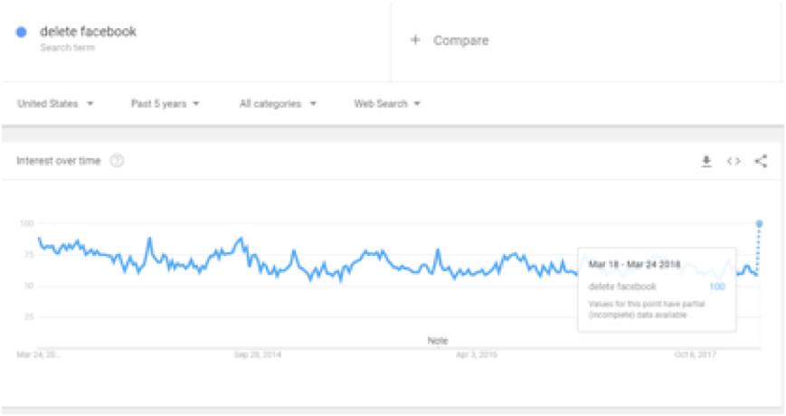 谷歌在“剑桥分析” (Cambridge Analytica)之后,“删除Facebook”搜索中显示出大幅增长