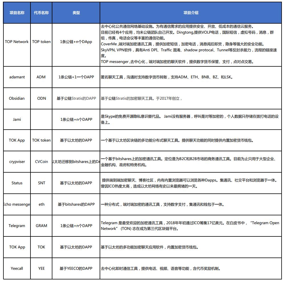 包括去中心化的通信网路公链和基于公链上的 DAPP。