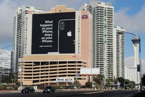上个月国际消费电子展期间,苹果公司甚至在拉斯维加斯一栋大楼的一侧竖起了巨大广告牌,告诉所有人,“iPhone上发生的一切,都会留在iPhone上。”