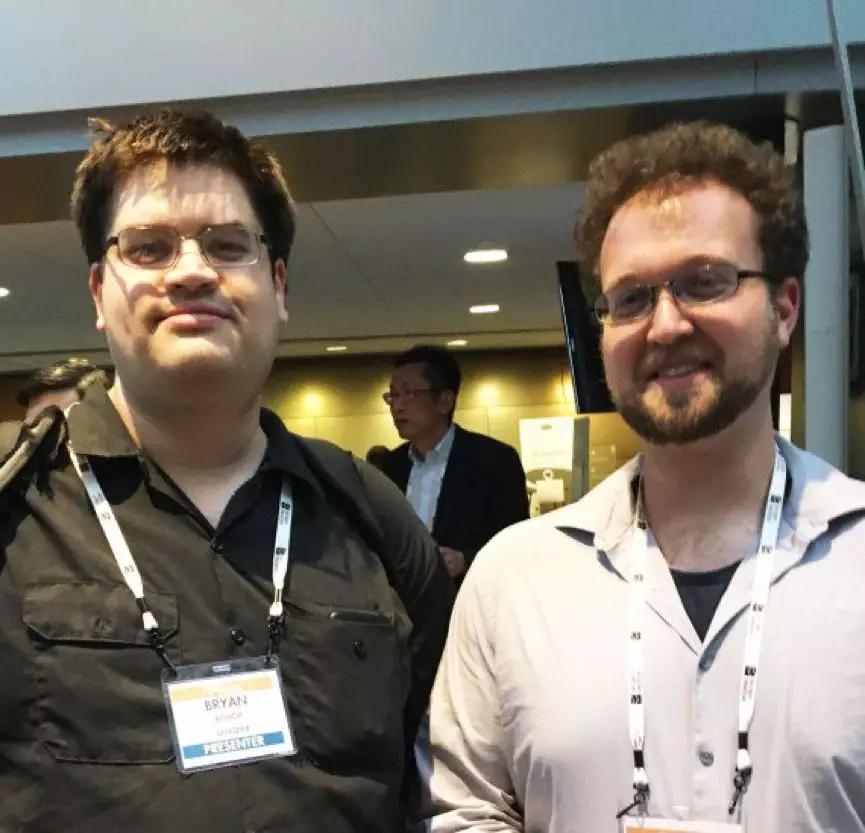 图 | “婴儿设计”狂热者 Bryan Bishop(左)与合伙人 Max Berry(右)一同出席行业会议