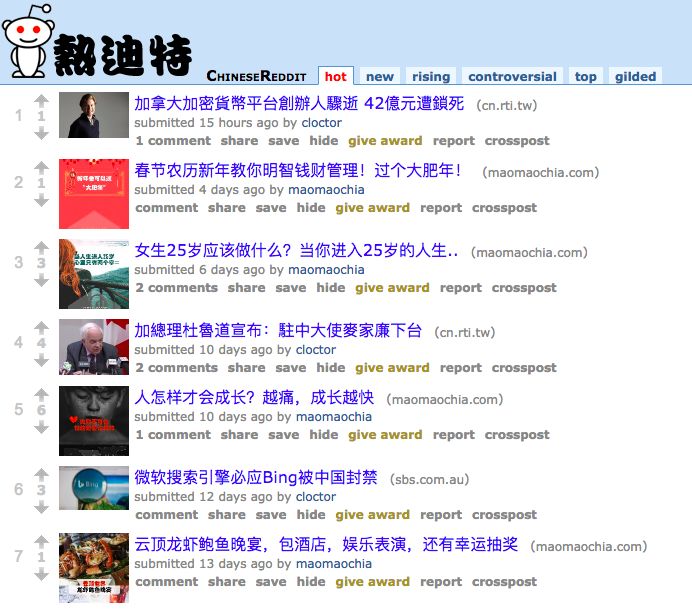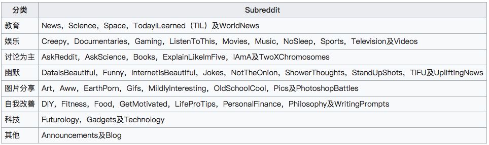 网站的内容分成众多分类,而以下的近70个分类的帖子,或叫作“subreddits”,是未注册、未登录及刚注册用户上主页上所见到的内容。