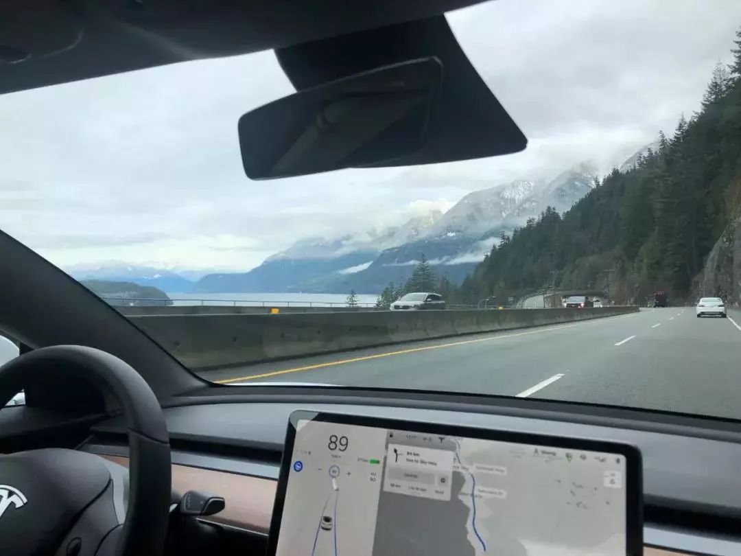 在提车第四天的时候,我带着我的大白进行了一次单程 135 公里,往返 270 公里的小小的 Road trip ——从温哥华上山到 Whistler 滑雪场。一路上都有使用 Autopilot。