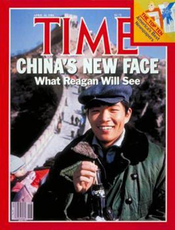 35年前,美国《时代周刊》刊登了封面文章——“中国的新面貌,里根将会看到什么(China's New Face, What Reagan Will See)”,封面图是一个普通的中国人手持一瓶可口可乐,站在长城前,面带幸福的笑容。