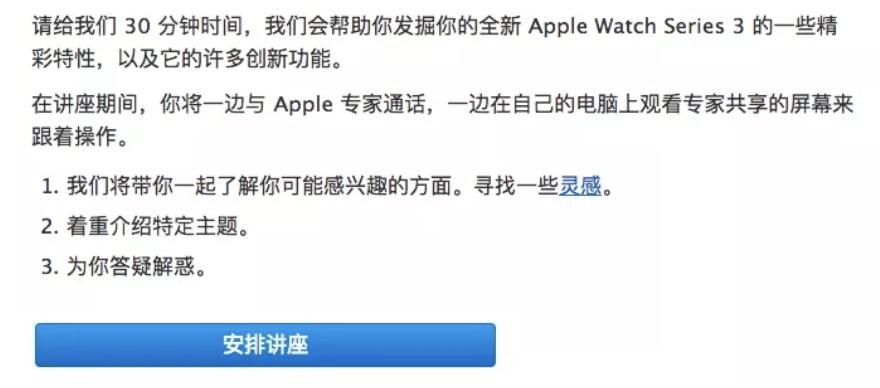 打开接收电子小票的电子邮箱,你应该会收到一封邀请函,按提示点选,预约课程时间。到了约定时间,苹果工作人员就会拨打到你所填写的手机号,了解指导对象需学习的内容,其使用苹果产品的经验历史,并按需进行辅导。