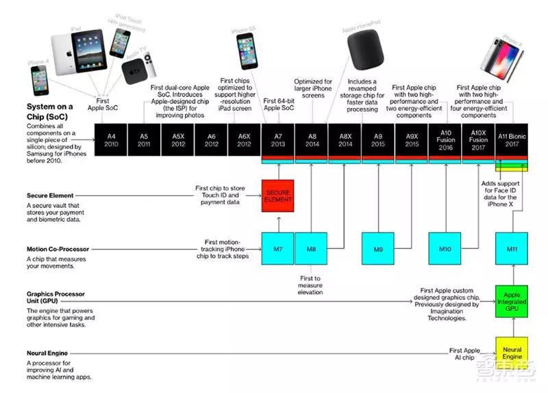 但A12芯片只是苹果自研芯片版图中的一颗,苹果自研芯片可以追溯到10年前,买买买更是不在话下。