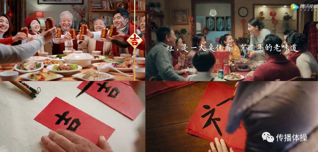 而放眼大多数品牌的春节品宣推广内容,仅仅是表现出团圆景象、年夜饭、挂春联等朦胧意象内容的,大多都没有什么记忆度。