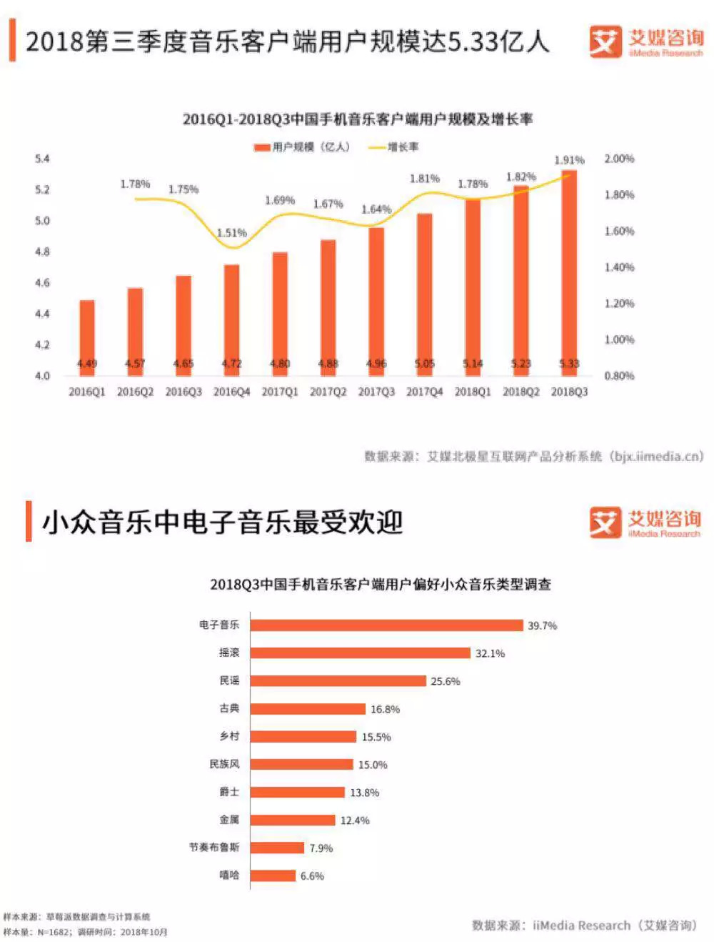 不过在2018电音类演出市场挤出了泡沫后,有了更健康的土壤,也会有下一步向好的结果。当然最重要的是,在电音节市场的浮躁之下,中国年轻人对电音的喜爱却被激发。据艾媒咨询发布的《2018Q3中国音乐客户端市场监测报告》显示,2018年第三季度手机音乐客户端用户规模达到5.33亿人,电子音乐以39.7%的用户偏好成为了最受欢迎的细分音乐类型,其次是摇滚(32.1%)和民谣(25.6%)。