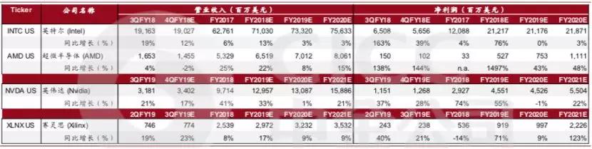 计算机芯片厂商净利润在目前阶段主要受数据中心需求推动。去年底,在贸易摩擦宏观背景,及下行周期内主要云厂商资本开支增速放缓的影响下,各计算机芯片厂商收入增长减慢,盈利增速开始大幅下降。