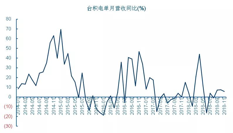 台积电2018年Q3、Q4业绩已经面临压力,在收入17%来自苹果的情况下,随着苹果下调指引,预计接下来几个月台积电的单月营收增速将继续下跌。
