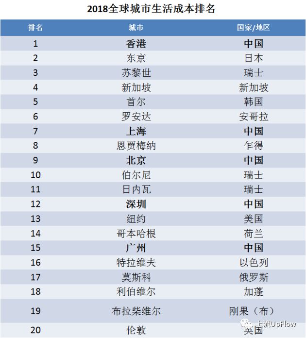 ▲世界最大的人力资源咨询机构美世咨询在计算了每个城市超过200项的生活成本后(包括住房、交通、食品、服装、家居用品和娱乐活动等),制定的“全球城市生活排名”