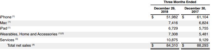Q1营收为843亿美元,同比下滑5%,不过优于市场预期839.7亿美元。季度摊薄EPS 4.18美元,比市场预期的4.17美元高出0.01美元;按分部,最主要的iPhone营收录得519.8亿美元,同比大降15%,低于市场预期526.7亿美元;其次服务业务营收录得109亿美元,同比大涨19%,高于市场预期108.7亿美元。