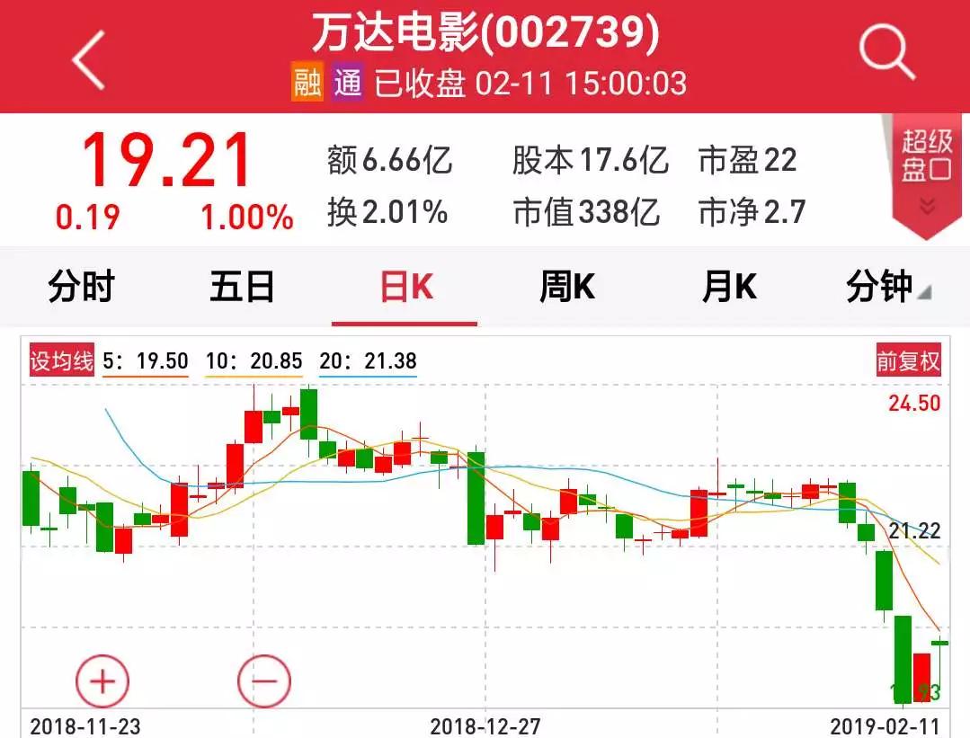 万达电影股价因业绩预告大跌后,重新攀升,初七收涨1%