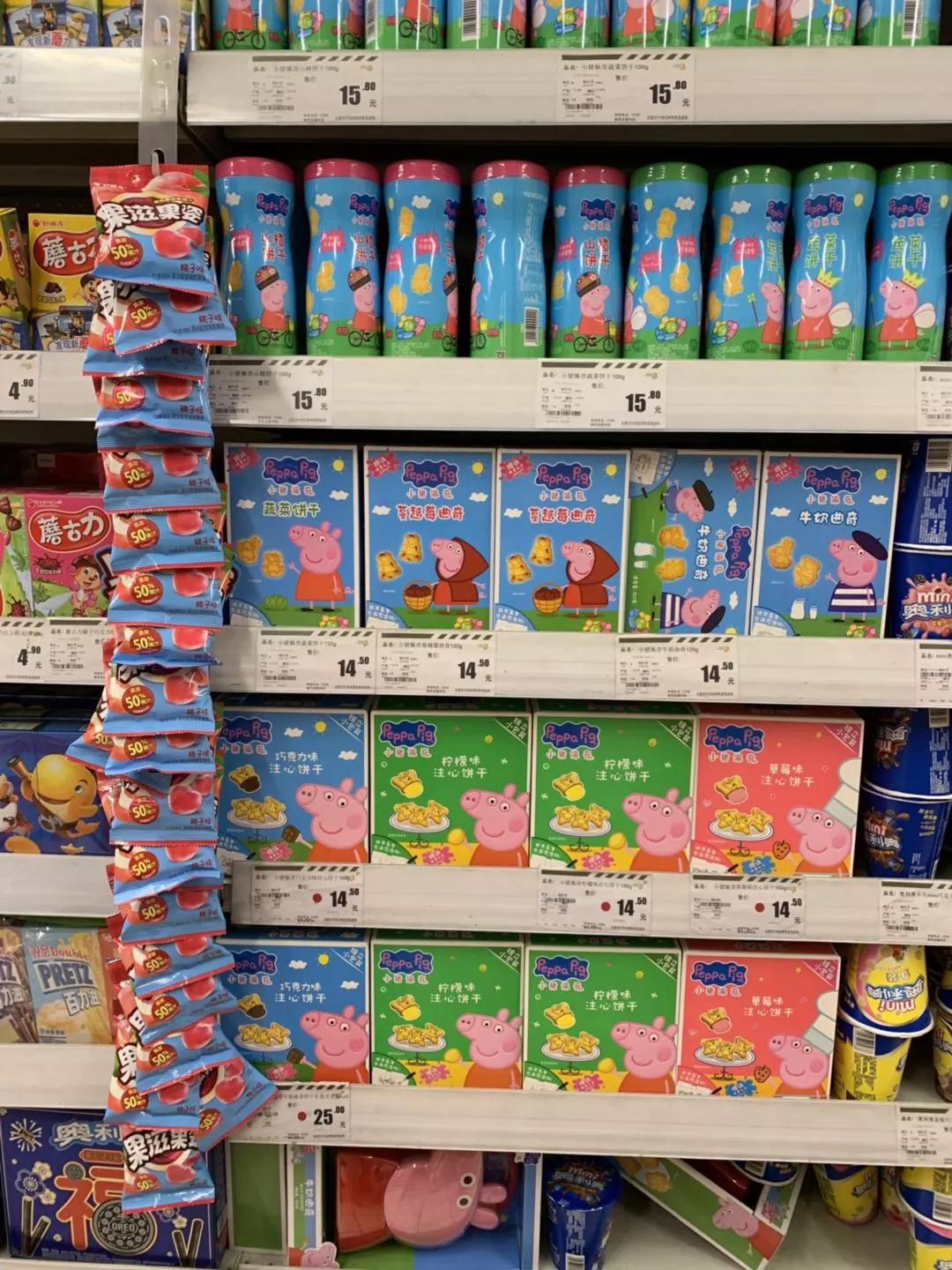 譬如在甘肃白银市,我的同事发现,去年回老家,都没有几个人知道小猪佩奇,但是今年都知道。并且小猪佩奇的相关产品已经铺满了货架。