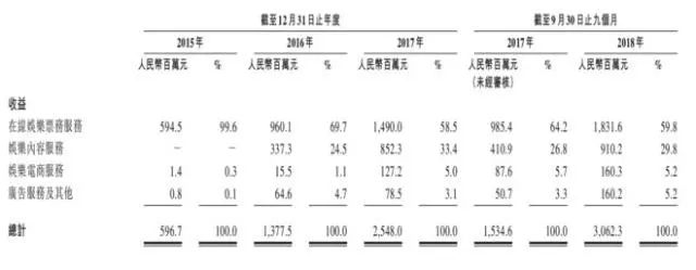 其中,在线娱乐票务占比最重,但已由2015年占比99.6%下降至2018年上半年的60.6%,目前收入占比第二大的业务为娱乐内容服务,2015年为0,2018年上半年占总收入比例为29.6%,娱乐电商服务占比5.2%,广告服务及其他占比4.6%。