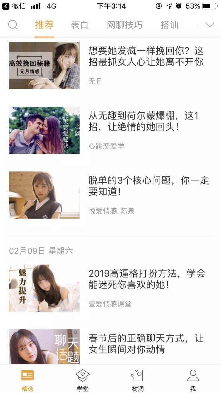 作为线上情感咨询App,小鹿情感入驻了多个情感导师团队,后者开设有直播课、FM音频、文章,内容包含分手挽回、追女生、分离第三者等。