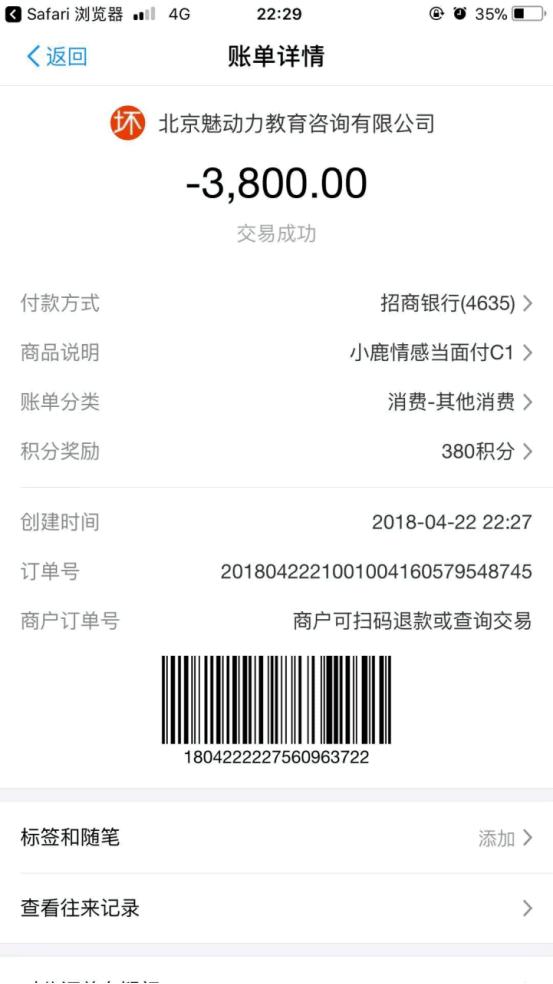 三个月后,即2018年4月,他接触到小鹿情感导师团队。在工作人员煽动下,他分两次一共交了9600元的私人定制服务。