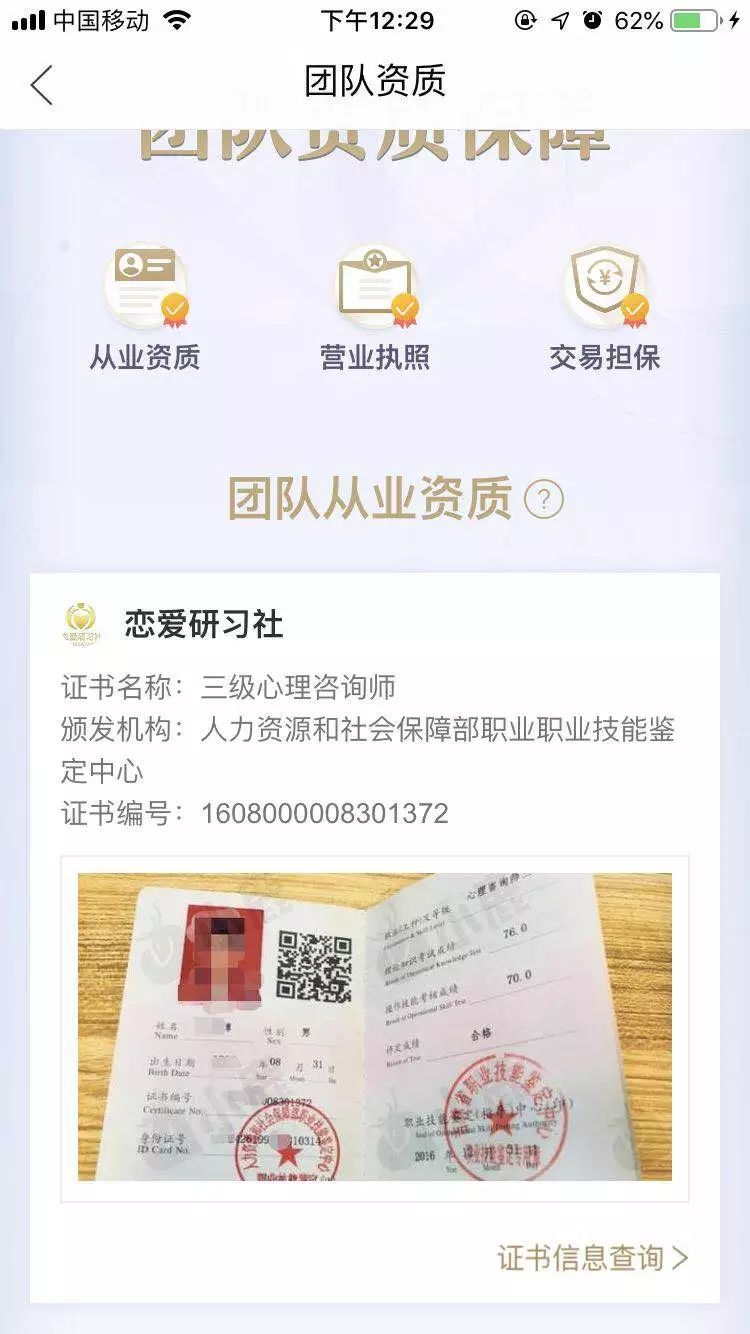 锌财经近日查看这些团队资质,多已去掉“国家”字样,仍保留“一级/二级/三级心理咨询师、国家婚姻家庭咨询师” 等字样。