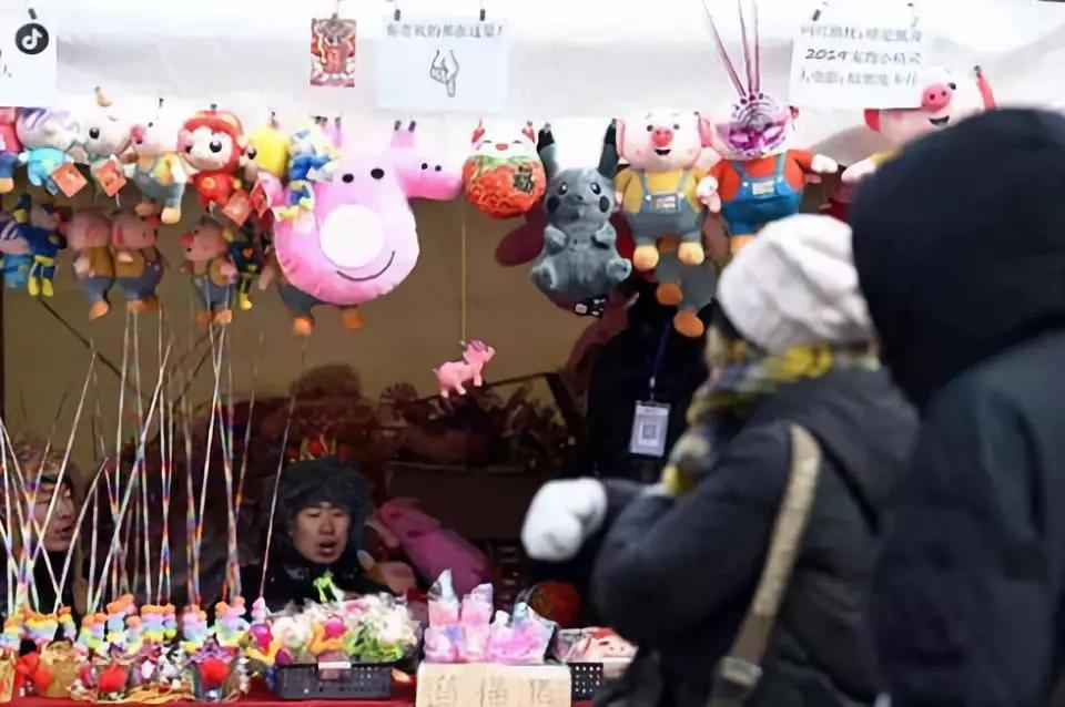 大年初二吃过早饭,阿鹏一家就到了地坛庙会。在售票处排了近5分钟队后,阿鹏花了30块钱买了3张门票。地坛庙会远没有阿鹏想象的有趣。道路两侧编上号的摊位给他一种“这不就是稍微高级点的路边摊么”的感觉。