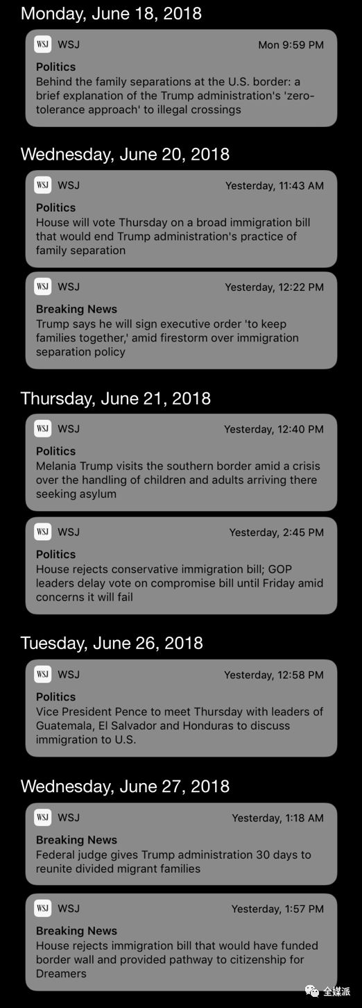 《华尔街日报》有关移民政策的推送