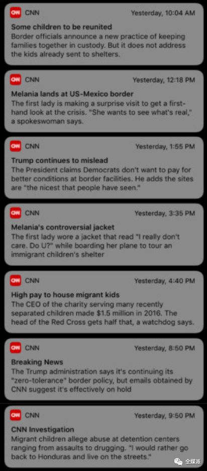 CNN在2018年6月20日推送了7条有关移民危机的新闻。