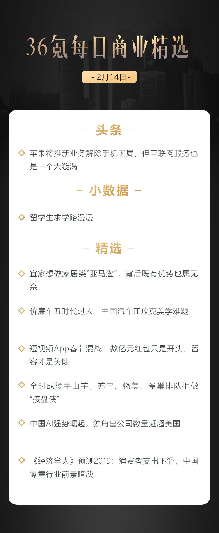 本文来自36氪付费栏目《36氪每日商业精选》——2月14日