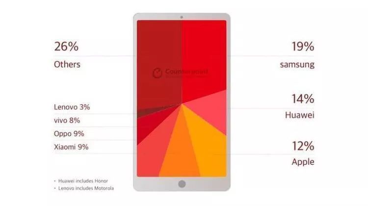 另一边,国内智能手机市场,再也不是10年前的草莽生长阶段,市场和资源越来越向头部品牌靠拢。Counterpoint报告显示,2018年第三季度全球智能手机总出货量为3.8亿部,华为、OPPO、vivo、小米共占据了40%的市场份额。