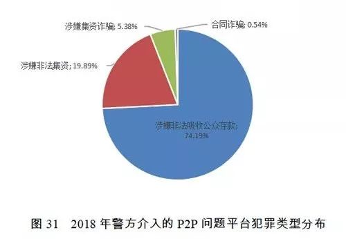 从问题平台涉嫌犯罪类型来看,主要集中在涉嫌非法吸收公众存款,涉及138家,占总数的74.19%;其次是涉嫌非法集资,涉及37家,占总数的19.89%;此外,有10家问题平台涉嫌集资诈骗,占总数的5.38%,还有1家问题平台涉嫌合同诈骗。