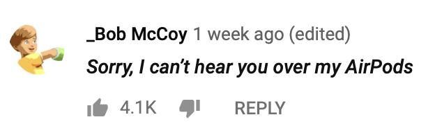 视频中最受欢迎的评论,提到了一个更受大家欢迎的关于AirPods的Meme: