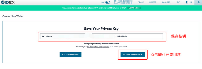 保存好方框中出现的私钥(一定要保存好,丢了就找不到了),建议抄写在纸上,多备份几个。