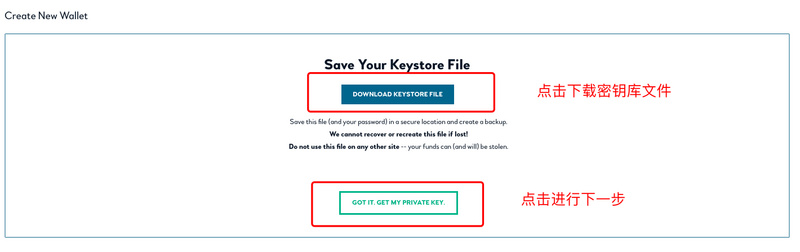 点击“下载密钥库文件”,将其保存在桌面,再次登陆账户时用得到;点击进行下一步。